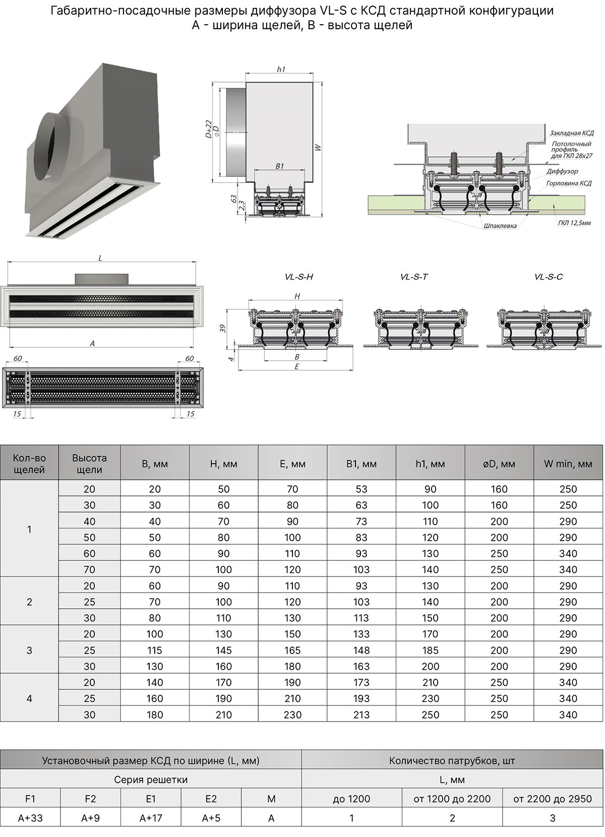 Линейный диффузор скрытого монтажа VL-S под шпаклевку