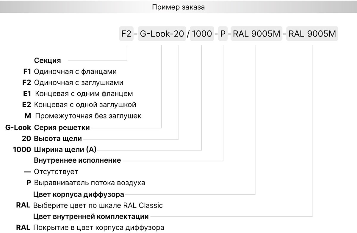 Корпус диффузора G-Look изготавливаются из экструдированного алюминиевого профиля АД31 по ГОСТ 22233-2001 b и окрашивается в любой цвет по шкале RAL Classic (рекомендованный цвет черный матовый RAL 9005 M)